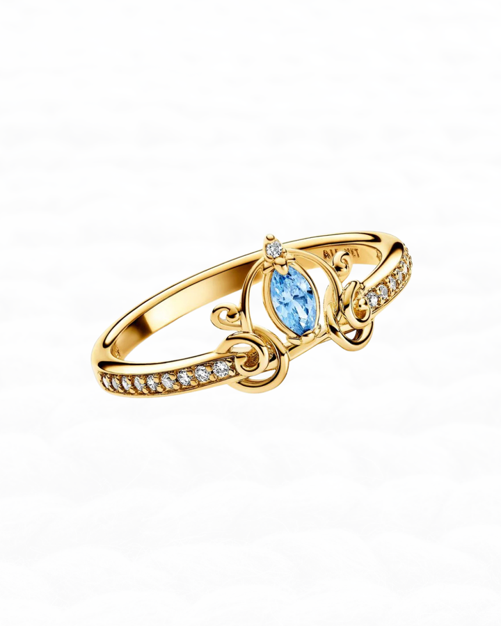 El Anillo Ojo de Cielo es un anillo en plata 925 con un esmalte dorado tiene un diseño delicado y ornamentado, protagonizado por una piedra azul en corte marquesa que evoca la calma y profundidad del cielo.