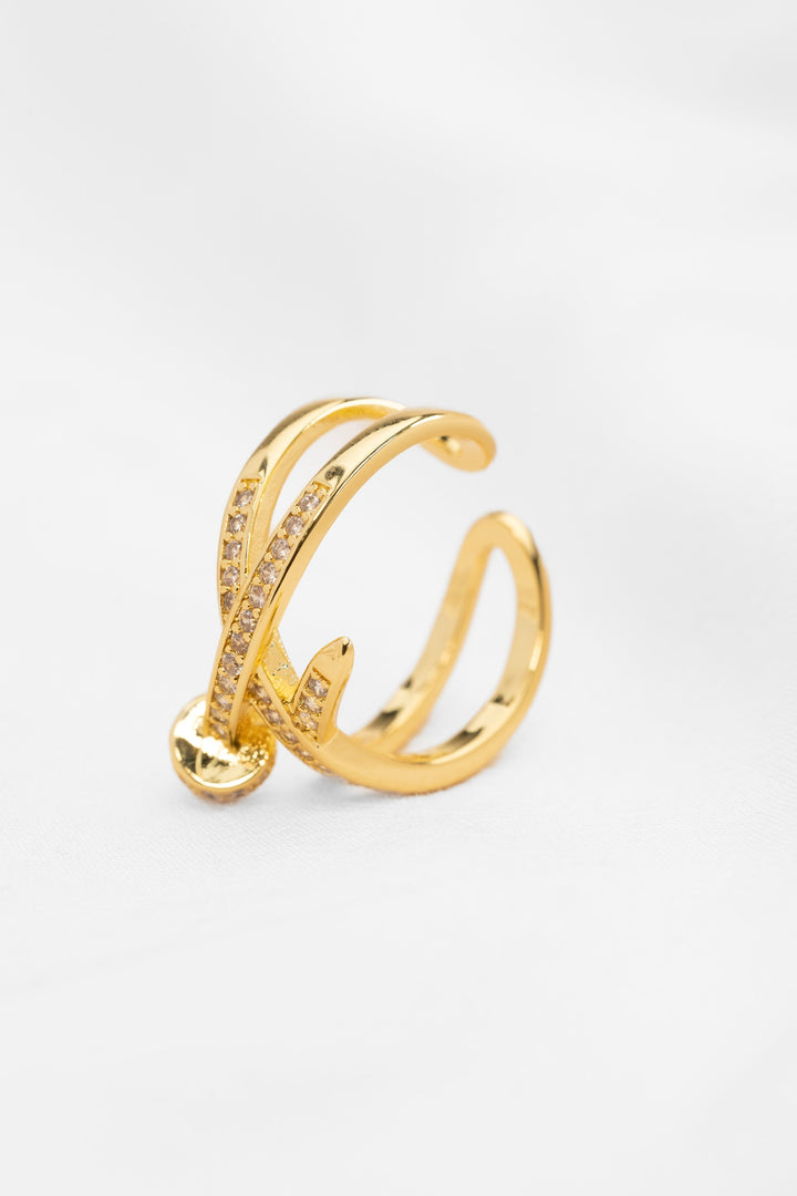 Anillo en baño de oro con circonitas