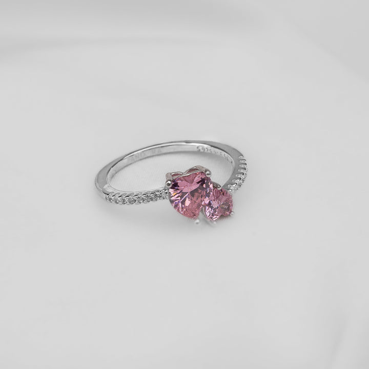 Anillo Doble Corazón Rosado AP59