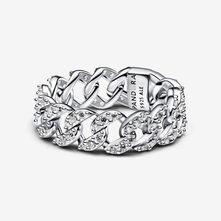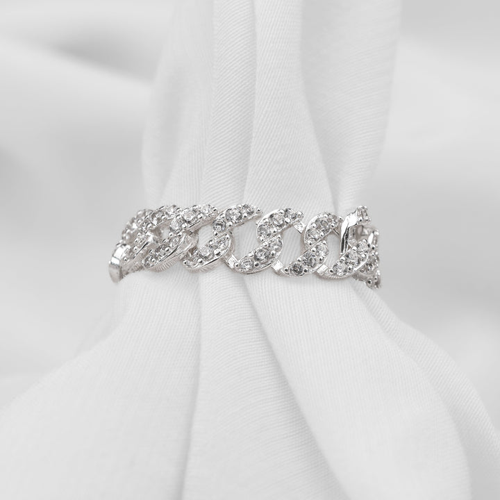 Un anillo que impone tendencia. Su diseño de cadena cubana, engastado con brillantes circonitas, es el toque urbano que necesitas para elevar cualquier look. Perfecto para quienes buscan un accesorio audaz y lleno de personalidad