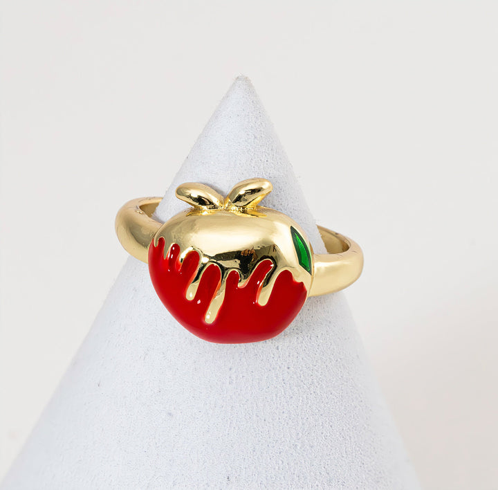Anillo en baño de oro ajustable en forma de manzana y sirve para la talla 5 a 10 (es ajustable)