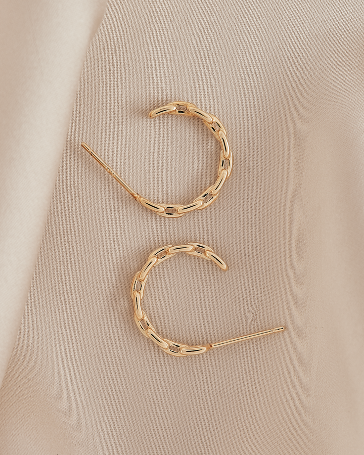 Aretes en plata 925 con baño de oro, hipoalergénicos, en eslabones