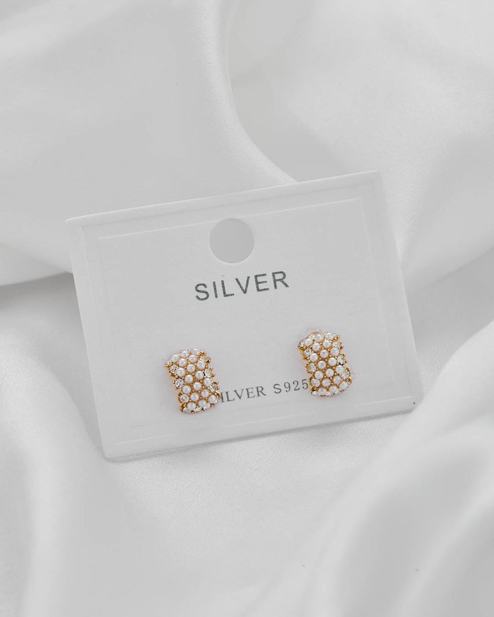 Aretes en plata 925 con baño de oro, hipoalergénicos, semicírculo en perlas