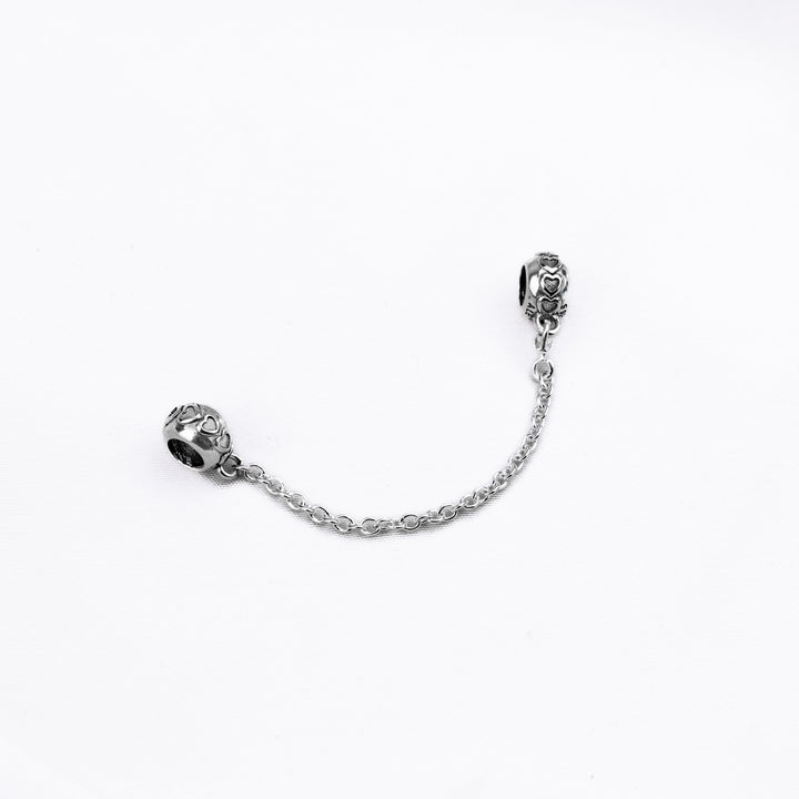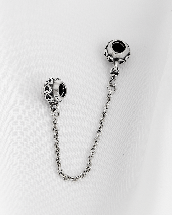 Seguro en plata 925 con terminales decorados con delicados motivos calados. Un accesorio funcional que protege tu pulsera mientras añade un toque de sofisticación.