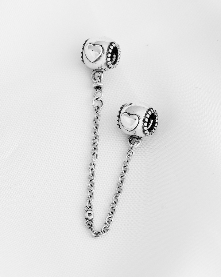 Seguro en plata 925 con detalles de corazones en relieve. Un accesorio práctico y simbólico que protege tu pulsera mientras añade un toque de estilo romántico.