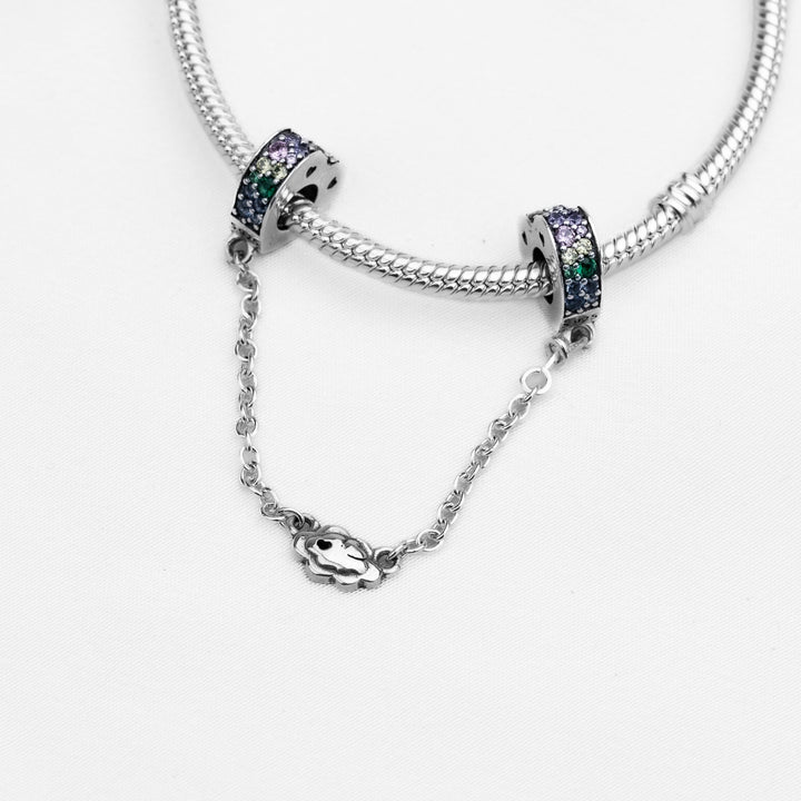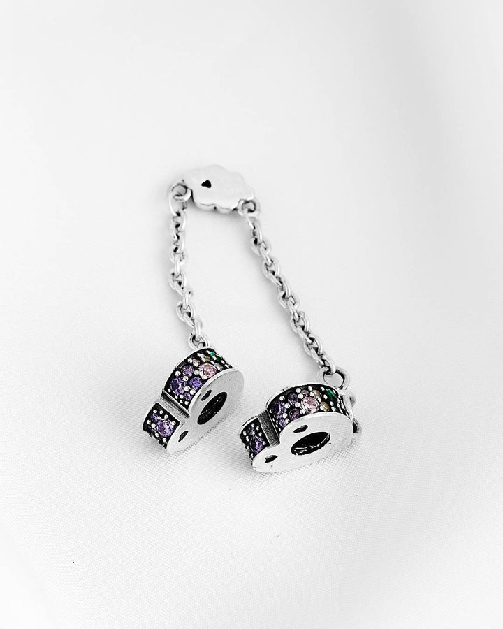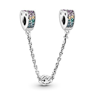 Seguro en plata 925 con forma de Corazon y adornado con circonitas de colores.