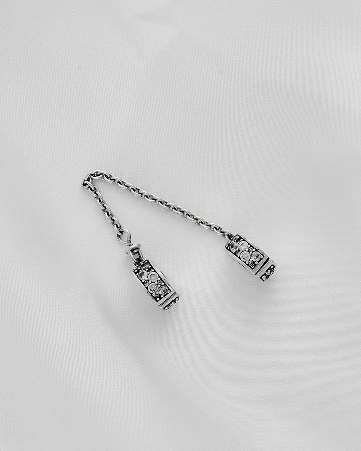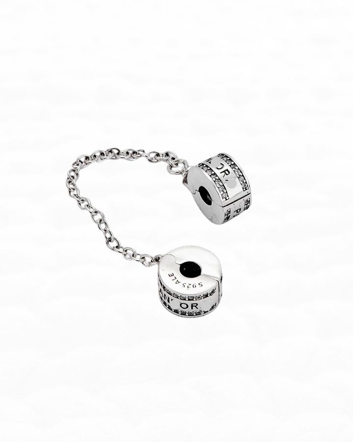 La Guardiana de Brillo en plata 925 con detalles de micro circones que aportan un destello elegante mientras protegen tu pulsera. Su diseño doble y firme asegura las piezas, combinando seguridad y sofisticación en un solo accesorio.