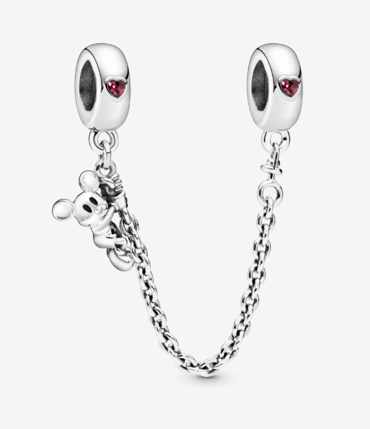 Escalada Mickey Cadena De Seguridad, Circonita Roja Material De Plata.