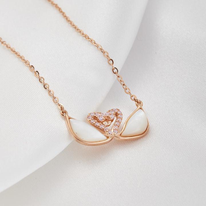 Cadena plata con baño de oro con dos cisnes Gold rose