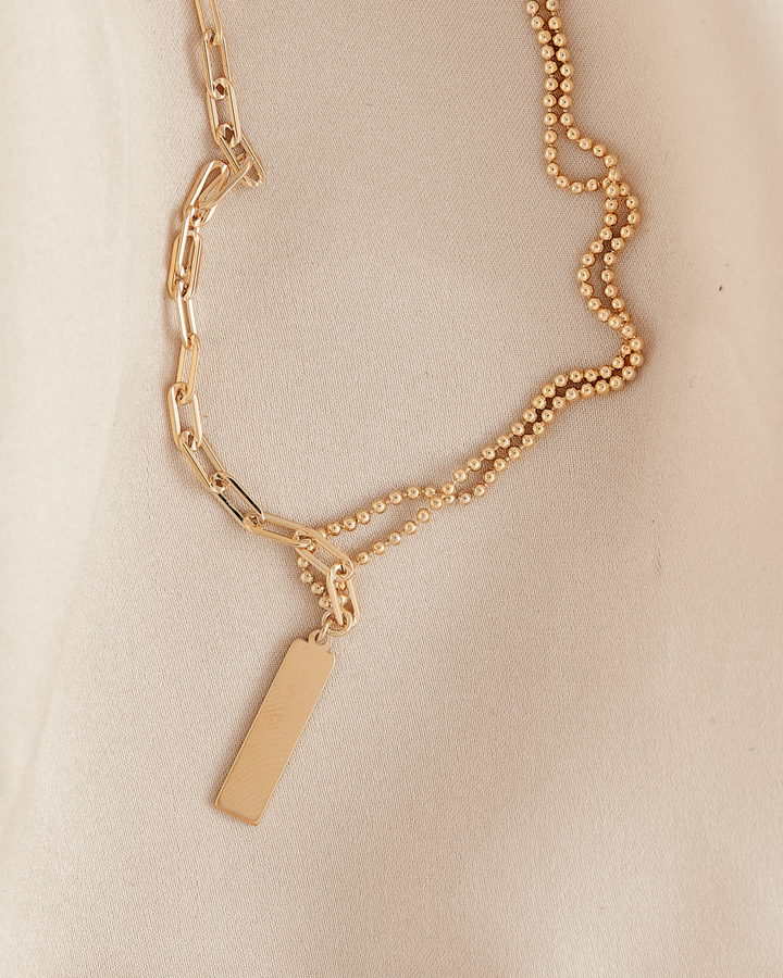Cadena en plata 925 con baño de oro en doble diseño y placa