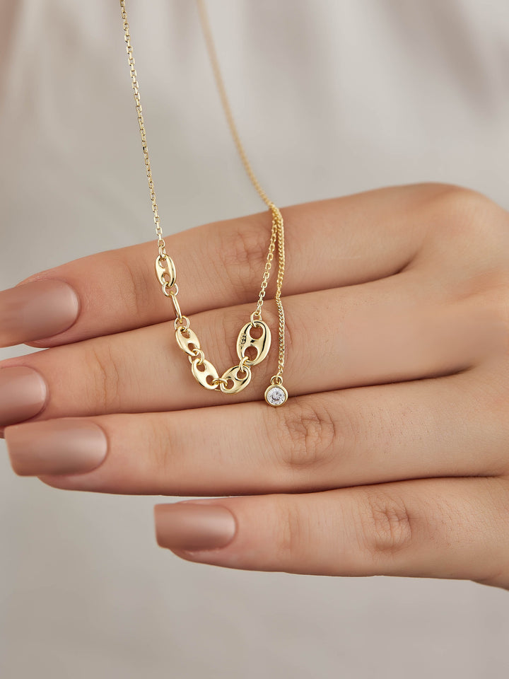 Cadena en plata 925 con baño de oro con un bello colgante adornado con circonita.