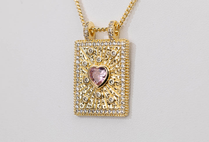 Cadena Italiana Corazon Rosado LLuvia Diamantado CG115