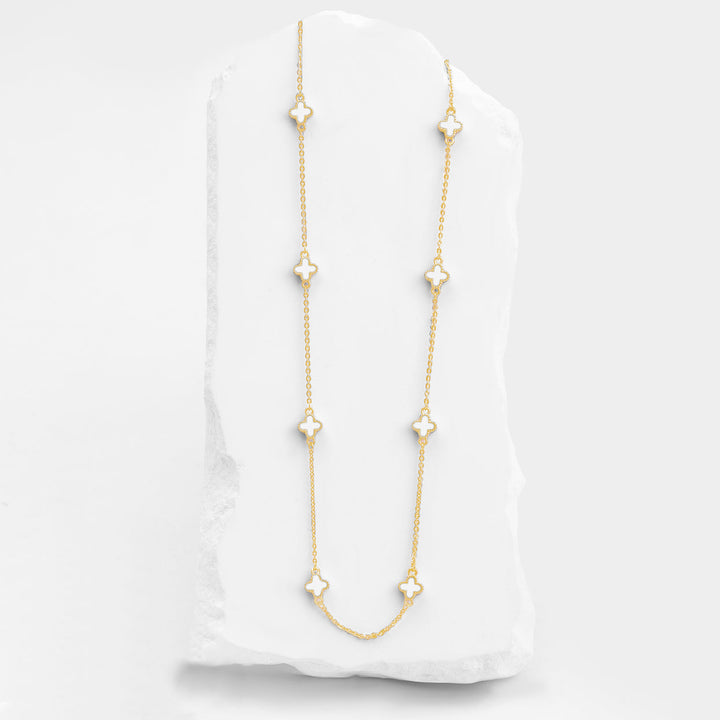 Cadena con tréboles y circonitas en oro laminado de 45 cm