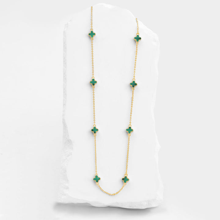 Cadena con tréboles y circonitas en oro laminado de 45 cm