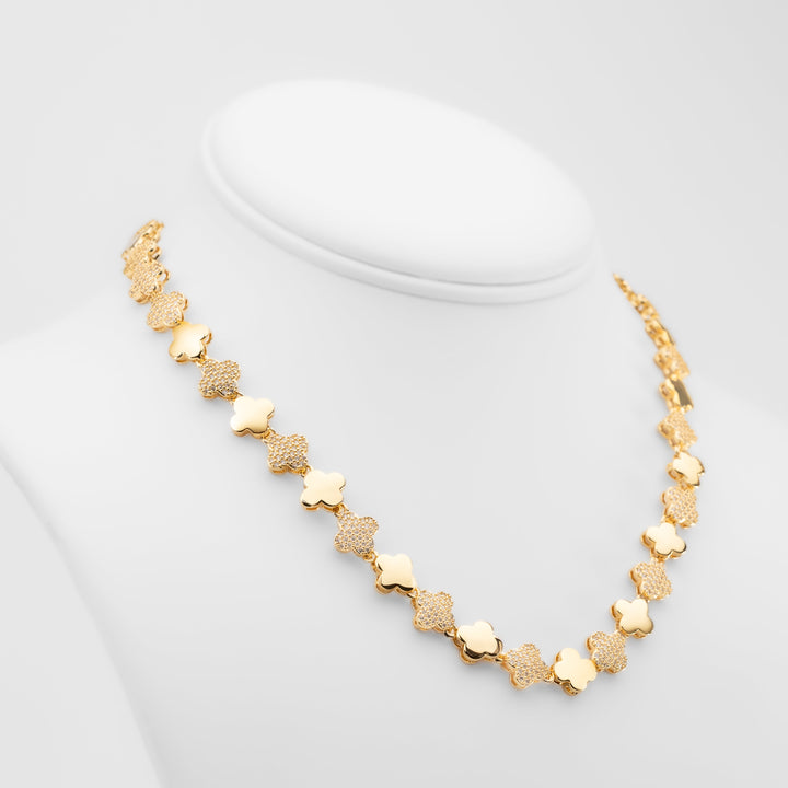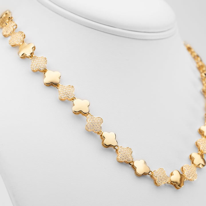 Cadena con tréboles y circonitas en oro laminado de 45 cm