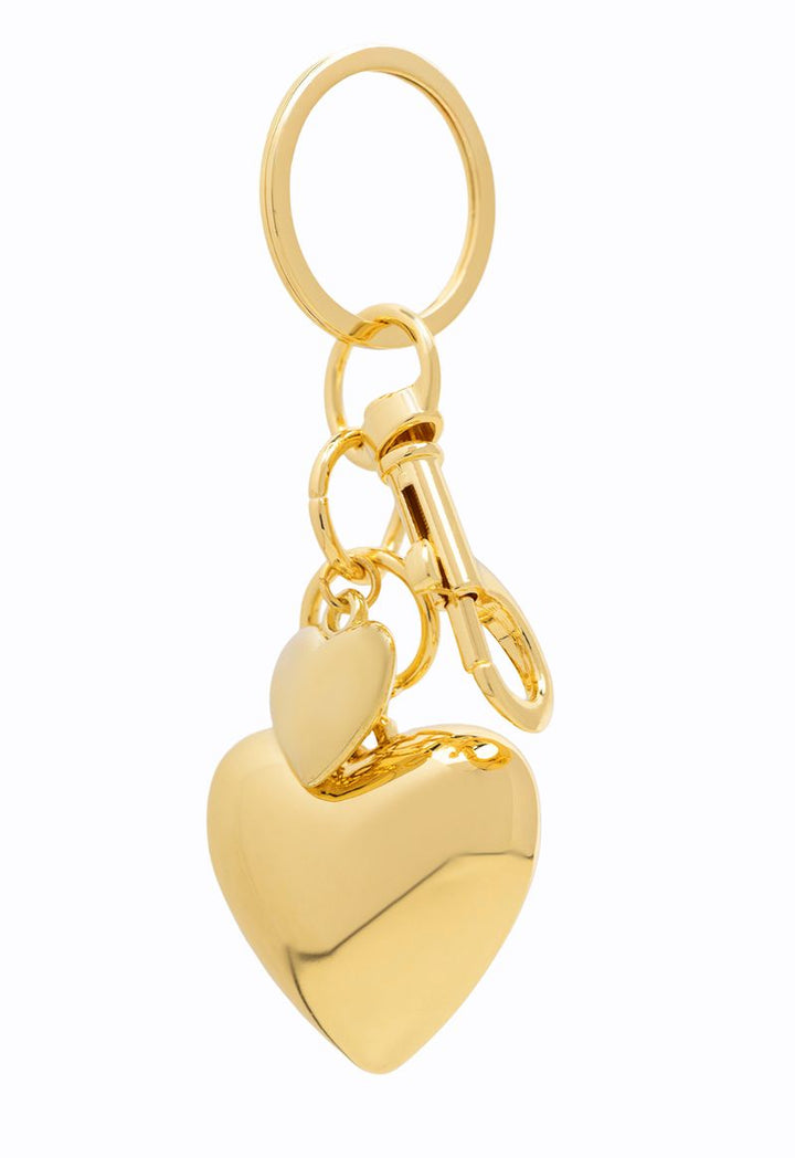 Llavero dorado con dos corazones brillantes y gancho tipo mosquetón. Un detalle ideal para regalar o llevar contigo siempre un toque de amor.