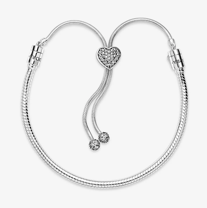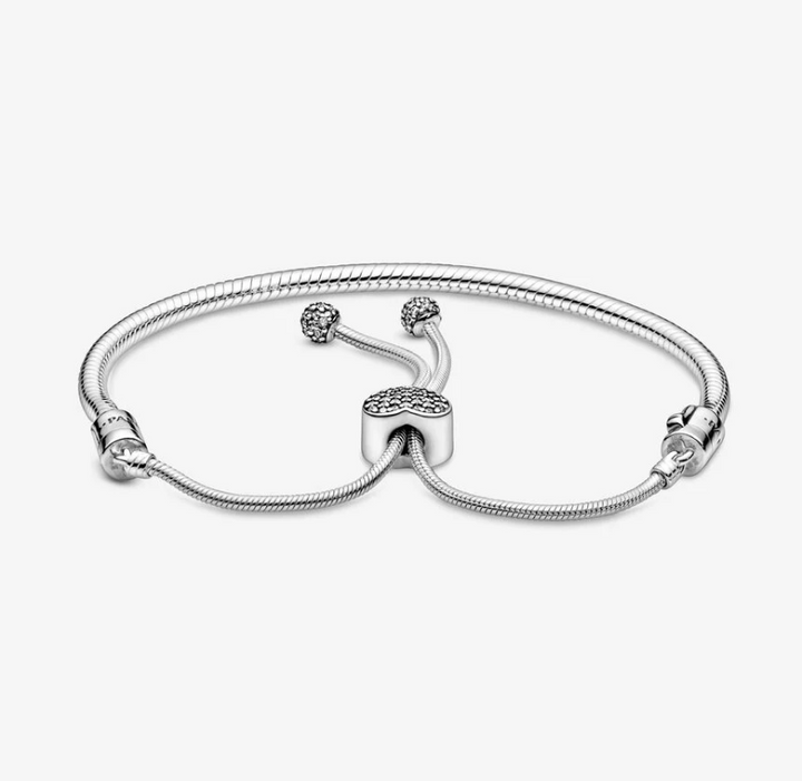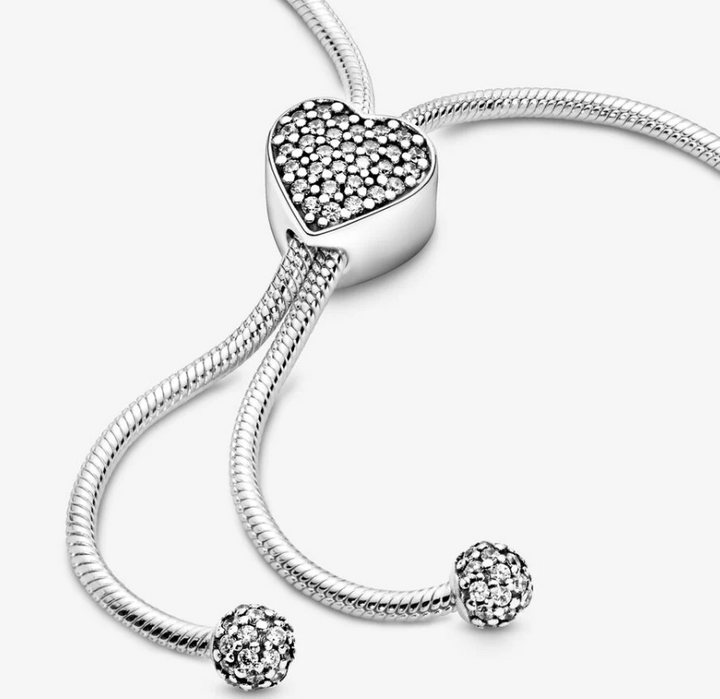 La pulsera Amor de Plata es una pulsera ajustable en plata 925 con diseño de cadena flexible y broche central en forma de corazón pavimentado con micro circones, que aportan un brillo deslumbrante. Su sistema de ajuste deslizante garantiza comodidad y adaptación perfecta a cualquier muñeca.