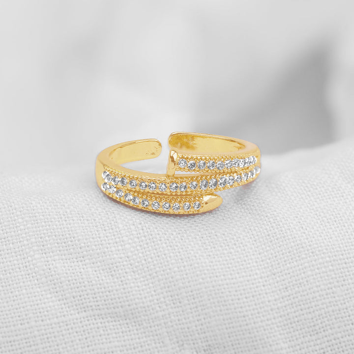 Material: Oro laminado, sirve para talla 17,18 y 19 (no es ajustable), Anillo ajustable