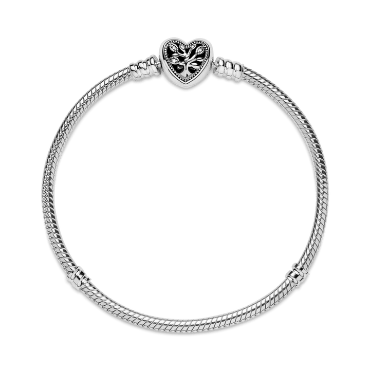 Pulsera en plata 925 con un corazón que lleva grabado el árbol de la vida.