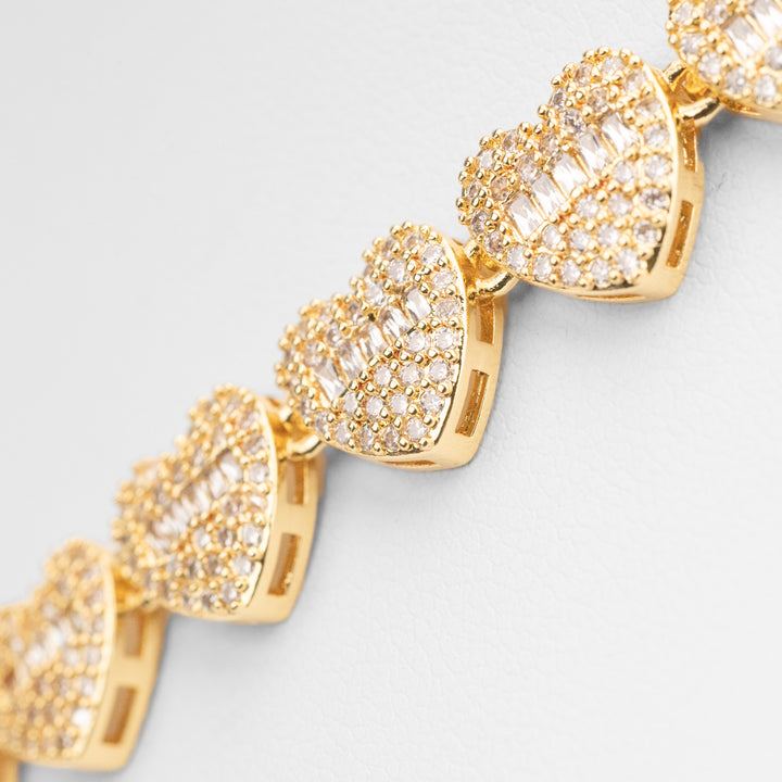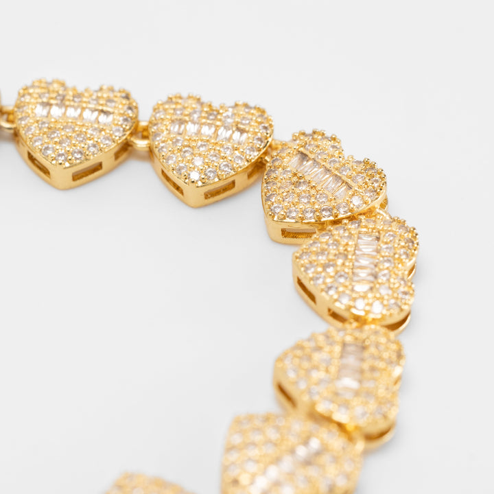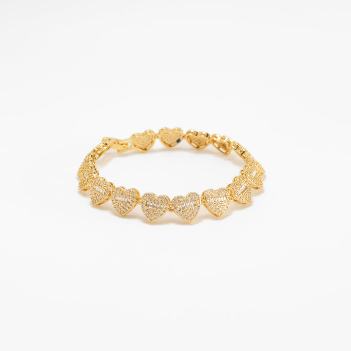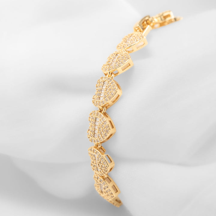 Pulsera Baño De Oro con corazones y circonitas talla única, sirve para talla 17,18,19 cm
