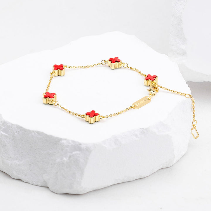 Pulsera en oro laminado con tréboles, ajustable de la talla 16 a la 20.