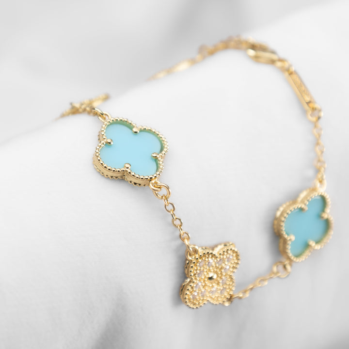 Pulsera oro laminado Azul Celeste Con Circonitas VCP16