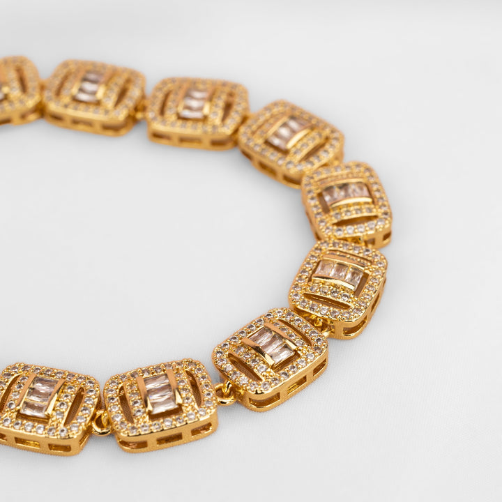 Pulsera Oro Laminado Eslabones Cuadrados con Micro circonita, le sirve a tallas 17-18-19