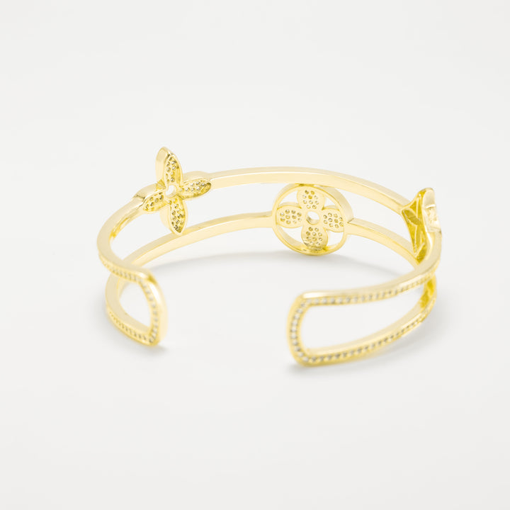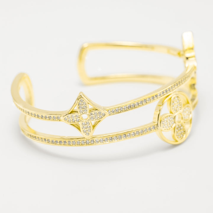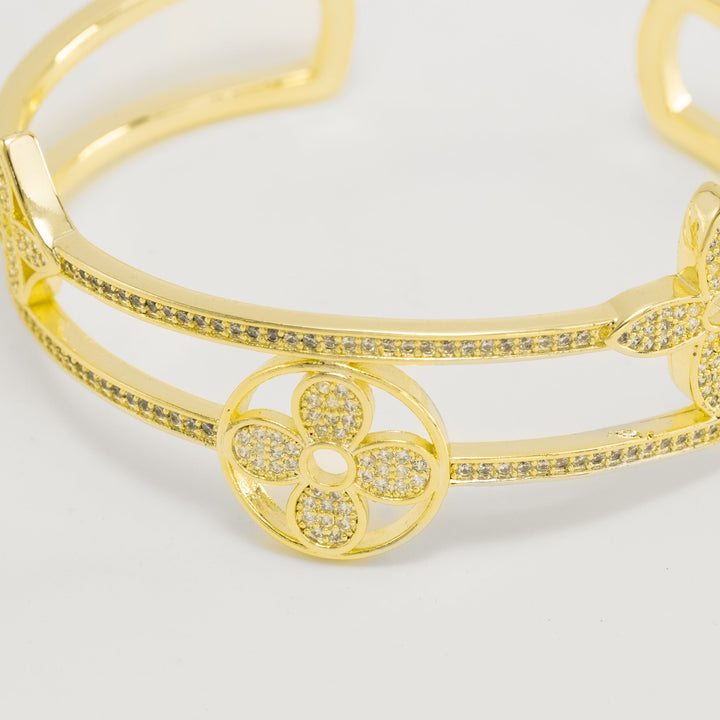 Pulsera Rígida Baño De Oro con Flor LV y circonitas multi talla , sirve para todas las tallas( 16 a 21)