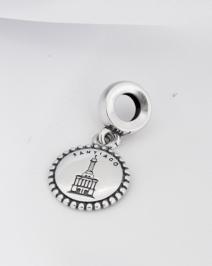 Dije de plata 925 con la imagen del monumento y símbolo de Santiago