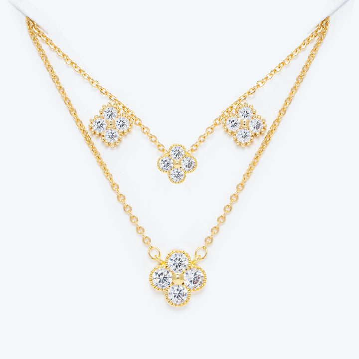Set Cadena y Aretes Doble Trebol LATSE63