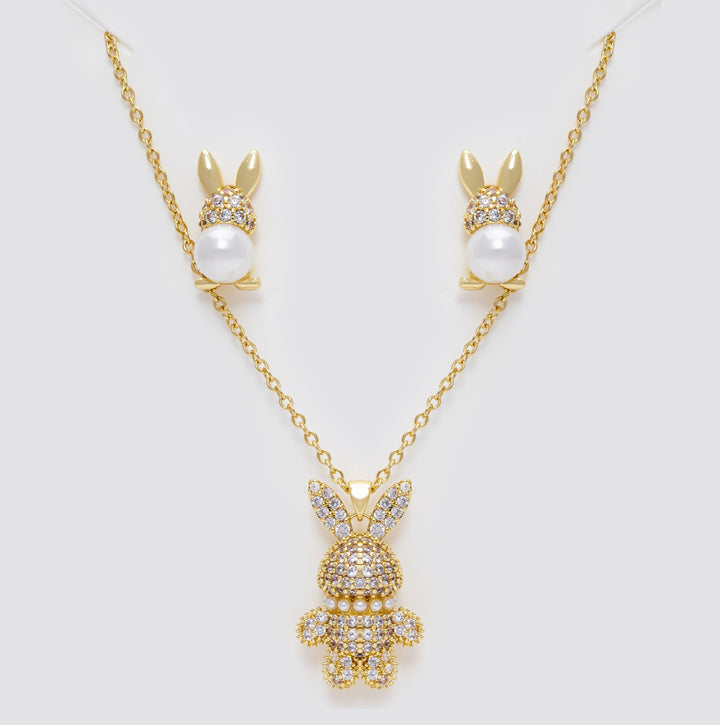 Set Collar Y Aretes Conejitos y Perlas LATSE58
