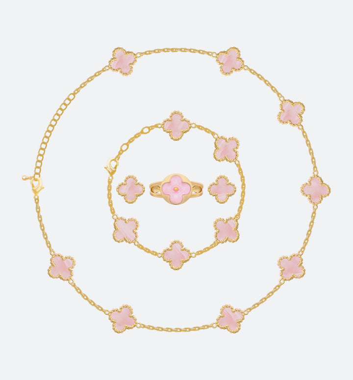 Set Rosa Arete, Anillo,Pulsera y Cadena VCAP21
