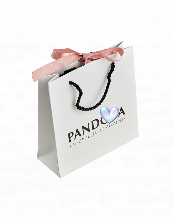 El Shopping Blanco Lazo Rosado perfecta para entregar joyas en plata 925, aportando un toque sofisticado y delicado que realza el valor de cada pieza.