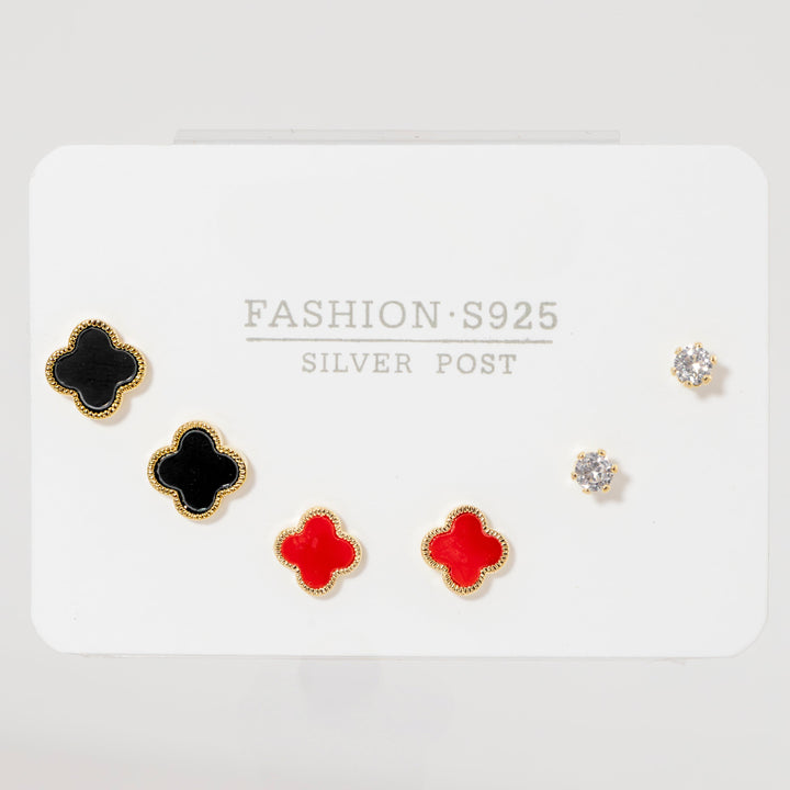 Set de aretes por 3 dormilona con circonitas en oro laminado en forma de trebol